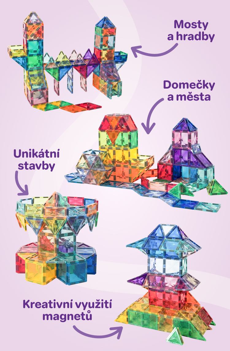 Ano, magnety v dílcích jsou dostatečně pevné na to, aby udržely i vysoké a složité konstrukce. Colormag má mimořádně silné magnety a kvalitní zpracování. Oproti konkurenční značce, jejíž stavba se rozpadla už u sedmého dílku, Colormag zvládl stejnou výzvu bez jakýchkoliv problémů.