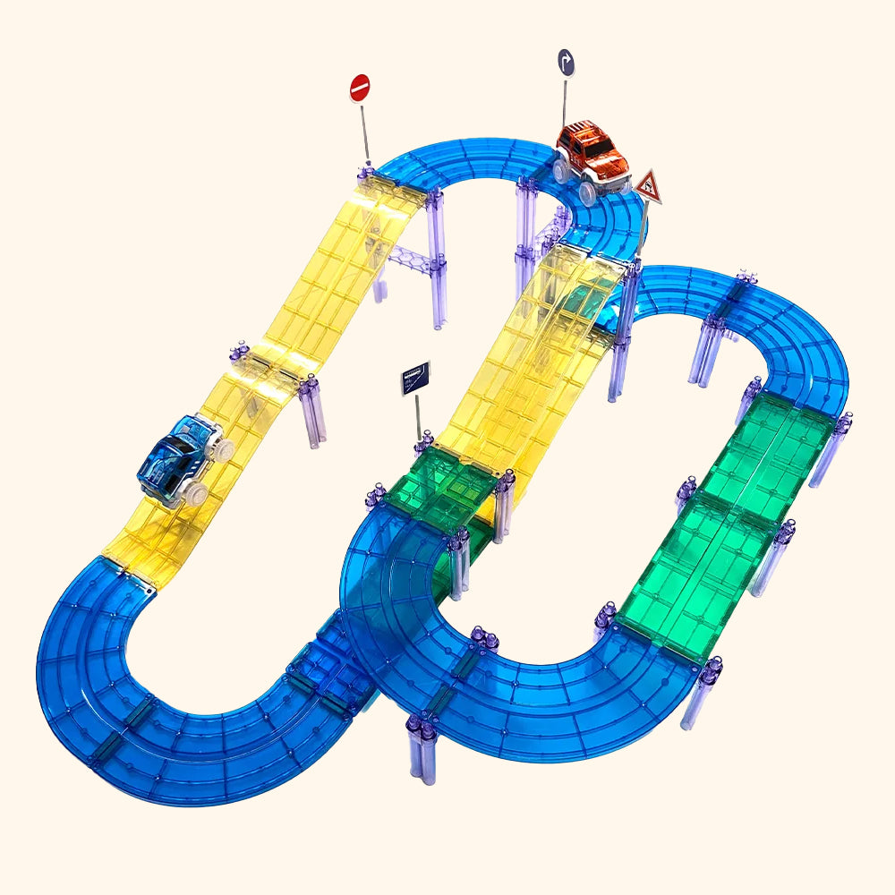 Tato magnetická stavebnice obsahuje speciální dílky, ze kterých mohou děti postavit různé varianty závodních drah – od jednoduchých zatáček po složité okruhy. Součástí stavebnice jsou také autíčka, která dokonale zapadnou do dráhy, takže si děti mohou užít nejen stavbu, ale i vzrušující závody. Autíčka jsou na baterie 1xAA. Baterie nejsou součástí balení.
