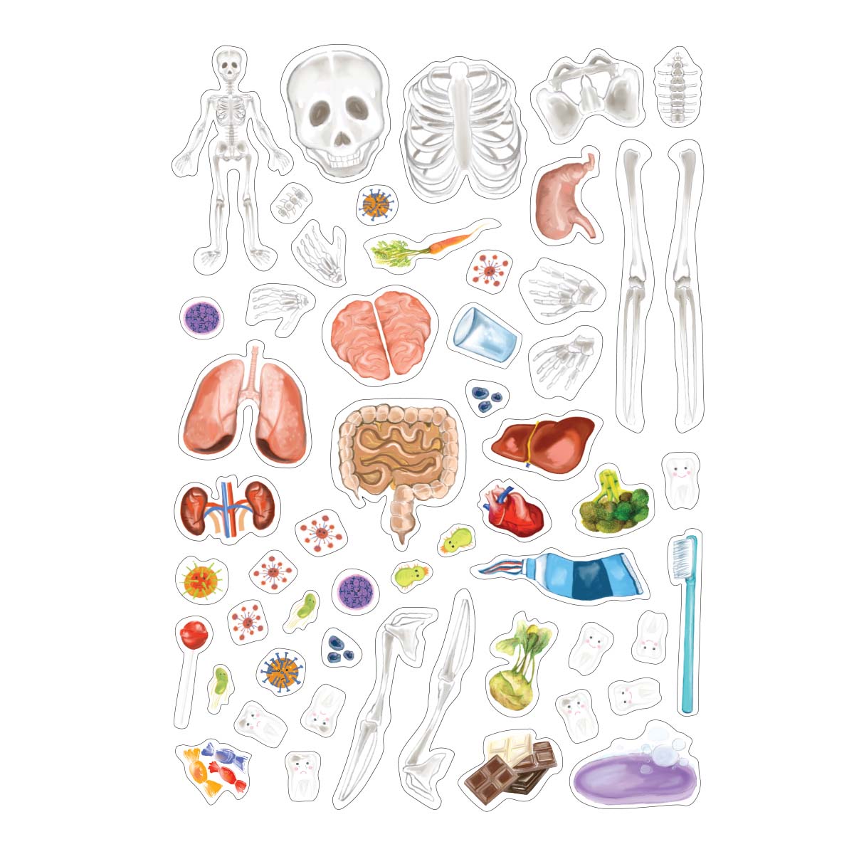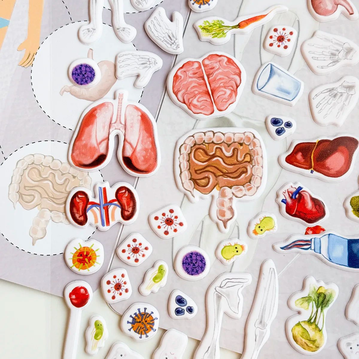 - přiřazujte s dětmi nálepky na správná místa, díky čemuž se dozvědí, kde se nachází srdce, plíce nebo jak vypadá kostra lidského těla,