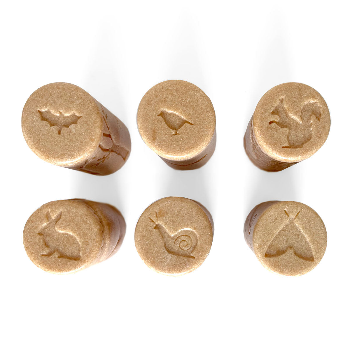 - 6 ks válečků (pták - strom, netopýr - dřevo, noční motýl - kapradina, veverka - kmen stromu, hlemýžď - listí, králík - nora).