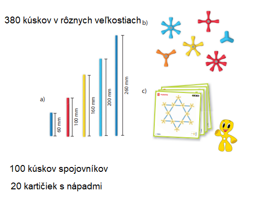 Flexisticks jsou barevné bambusové tyče s flexibilními konektory, které vyzývají děti ke kreativitě. 20 kartiček poskytuje informace o tom, jak funguje systém zasouvacích modulů a zároveň slouží i jako inspirace pro stavění. Jednotlivé dílky lze využít pro skládání malých geometrických tvarů stejně jako pro ohromující velké projekty.