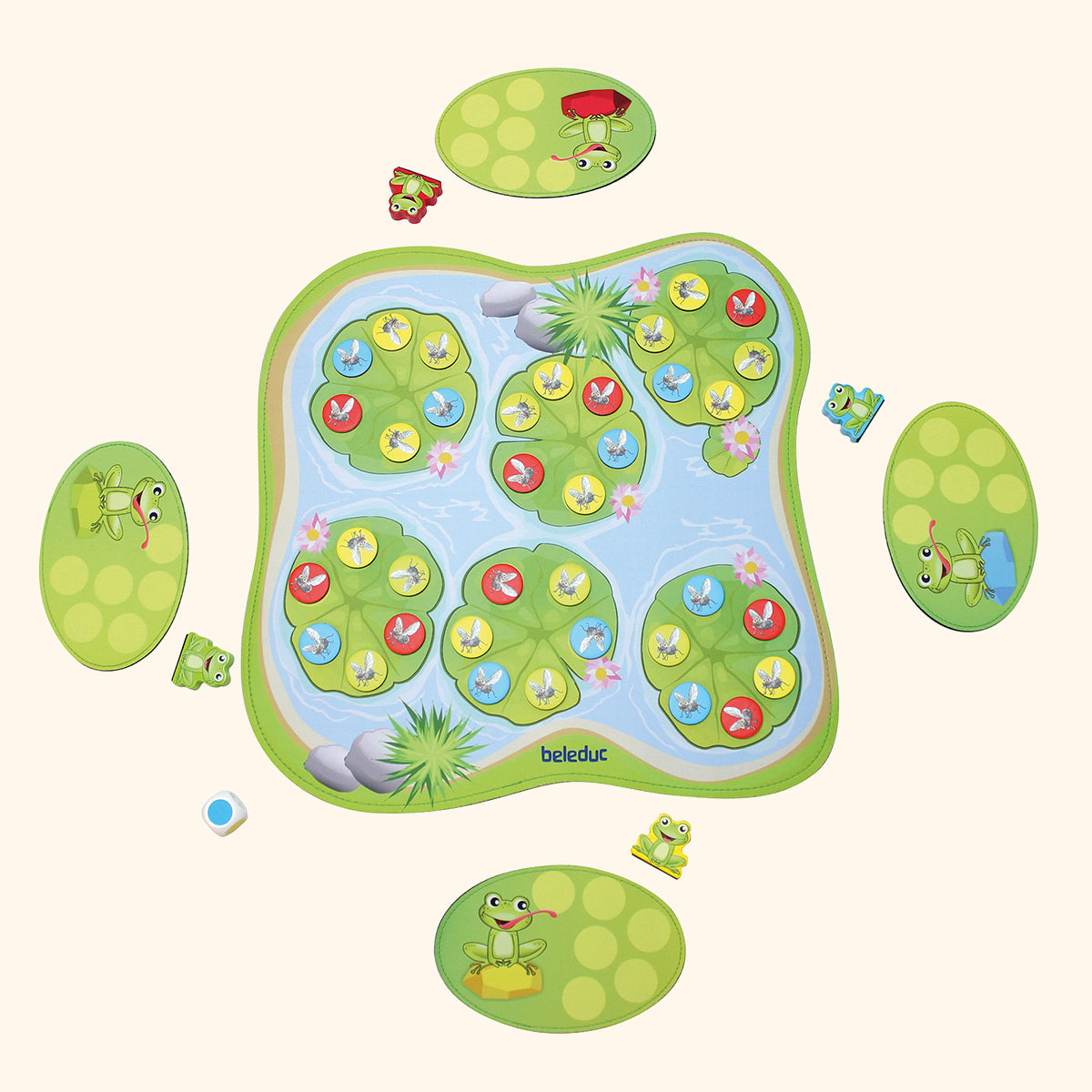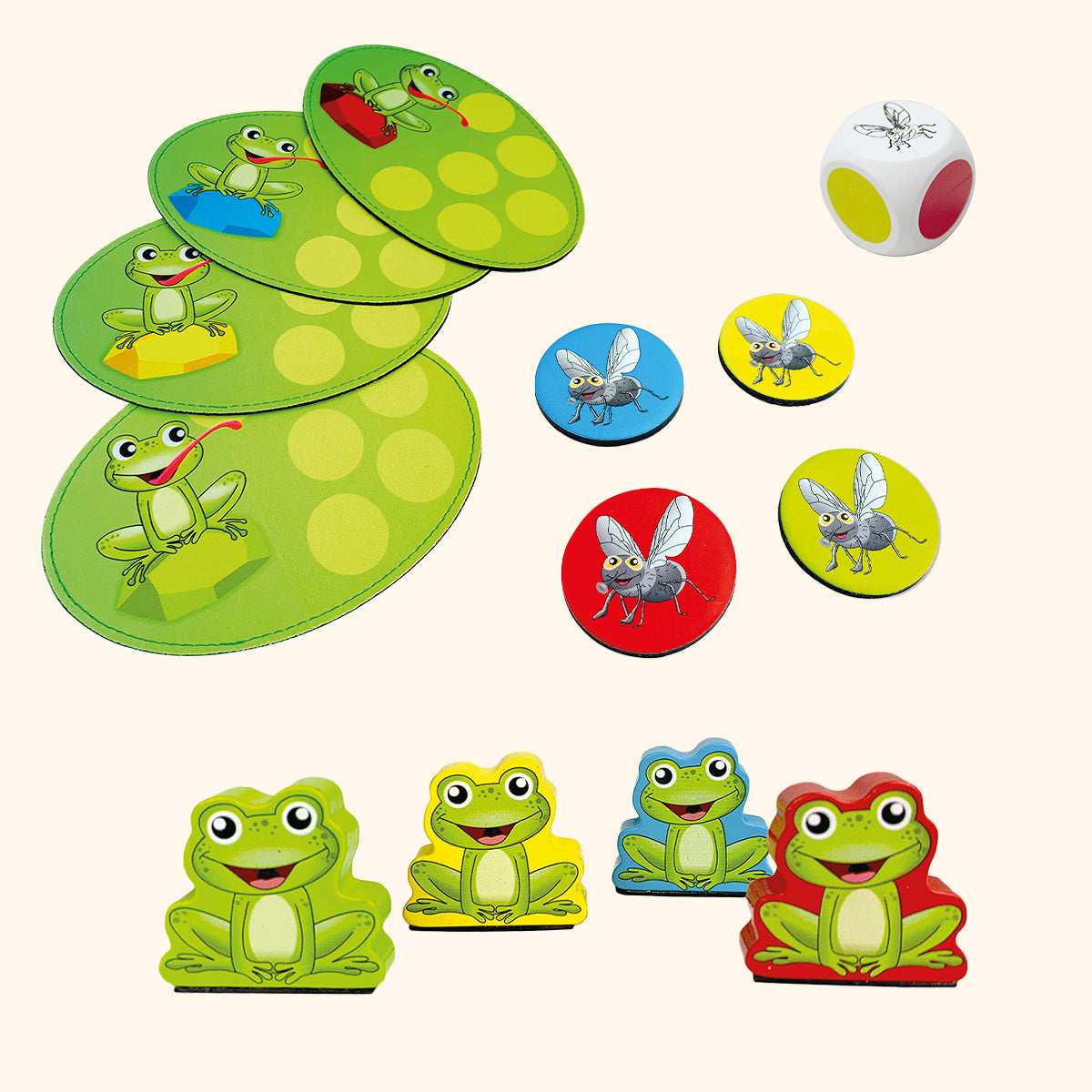 V jezírku s lekníny se toho děje hodně! Hráči se snaží svými žábami pochytat mouchy a jako první nachytat co nejvíce much. Tato vzrušující a pestrá hra vyžaduje rychlou reakci a dobrou paměť. Hráči se snaží pochytat co nejvíce much a posbírat je na vlastní herní podložku. Cílem hry je jako první zaplnit všechna muší políčka na vlastní malé podložce.