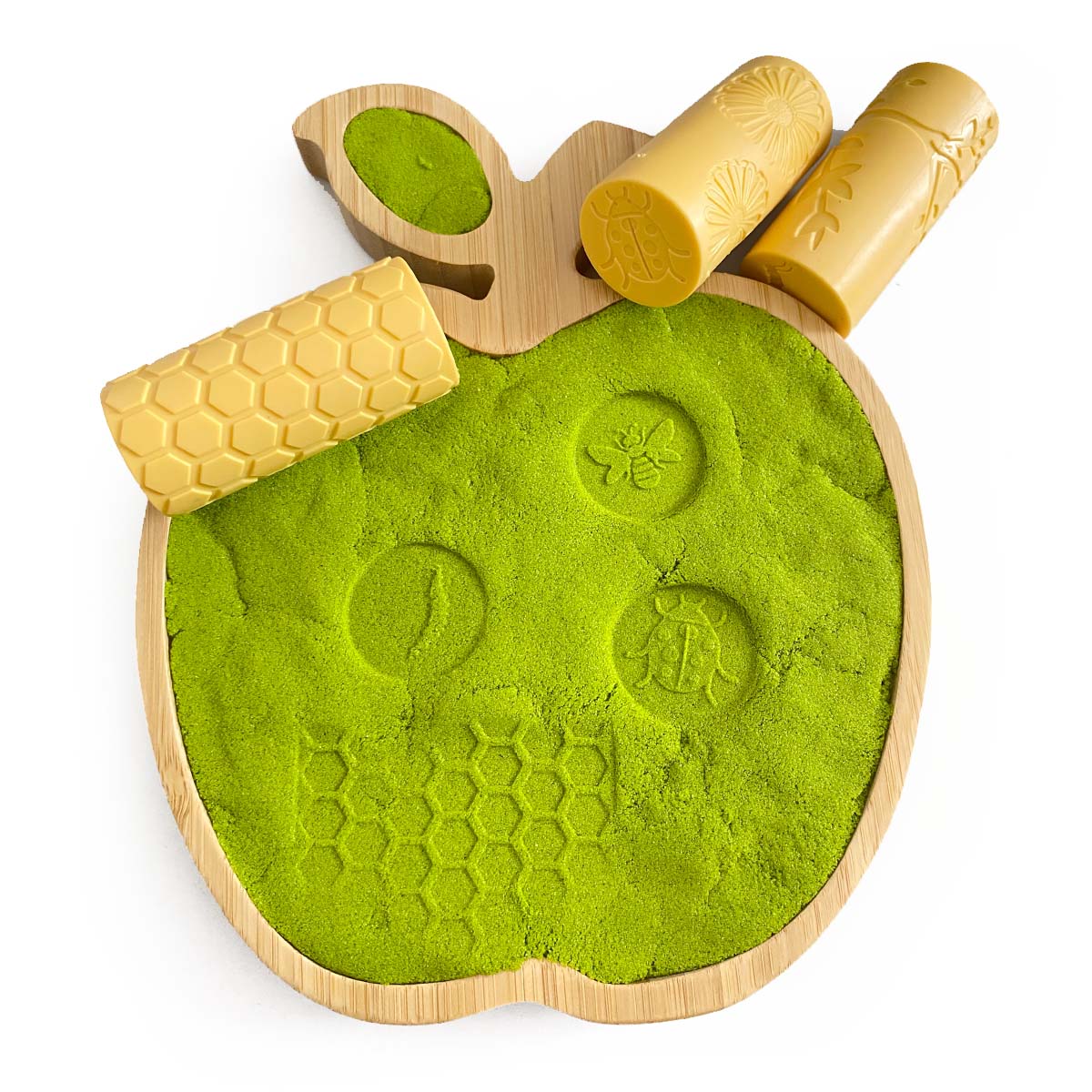 pomocí dynamického písku si v tácku vytvořte vlastní razítka,